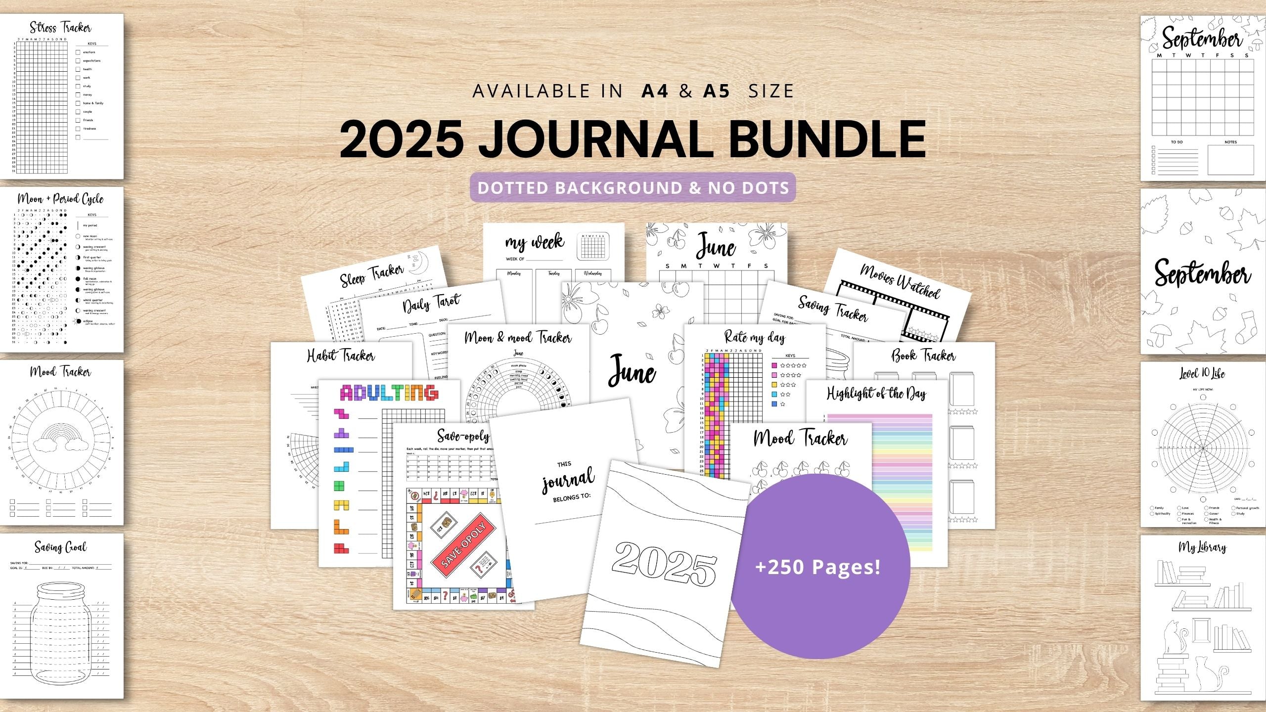 With the Journal Bundle, you won’t just plan your days — you’ll shape a life with intention. Track habits, mood, cycle (aligned with the moon), goals and finances. Balance productivity with well-being, nurture personal growth and spirituality, and enjoy your hobbies.